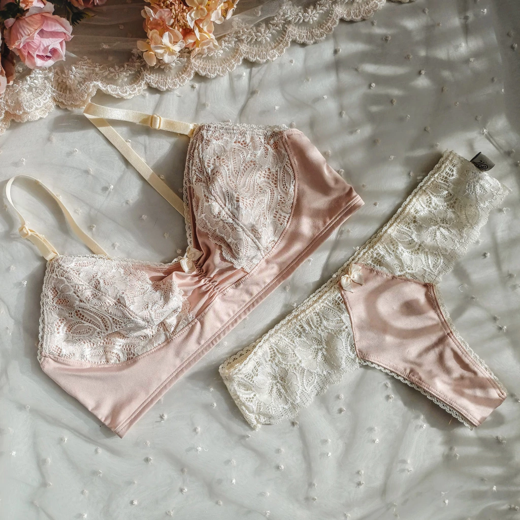 Conjunto SIMONA ROSA: Conjunto con recorte en el bajo busto en lycra rosa y puntilla en color crudo. Con colaless de heroso diseño, para una combinacion muy sensual y delicada.