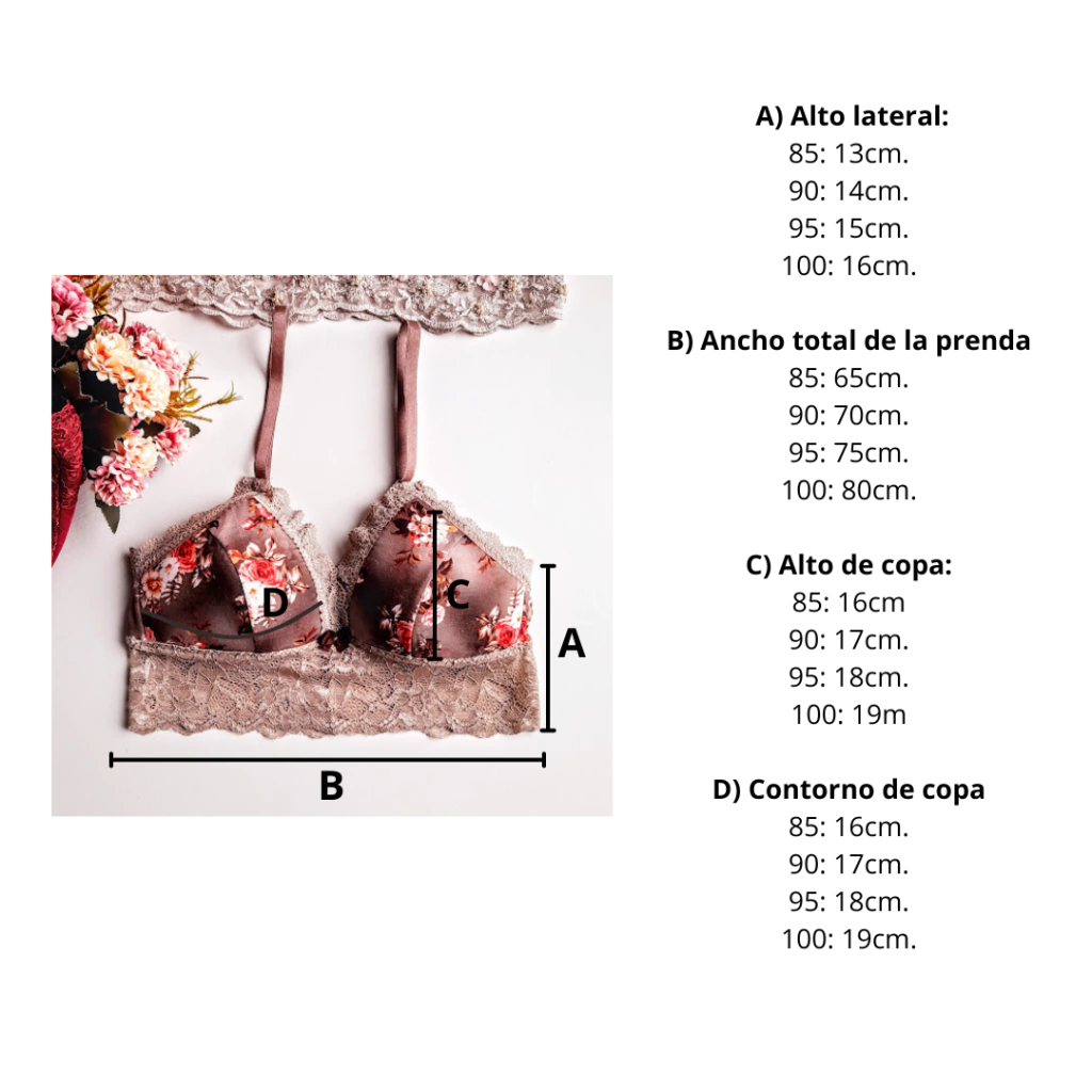 Descubre la elegancia y la sensualidad en este conjunto en modal estampado con lunares con delicados detalles de modal estampado con flores. El corpiño cuenta con un gancho de prender atrás y una taza bondeada armada que se adapta a tus formas de manera suave y blanda. La bombacha culotte less en la misma tela complementa este diseño único.